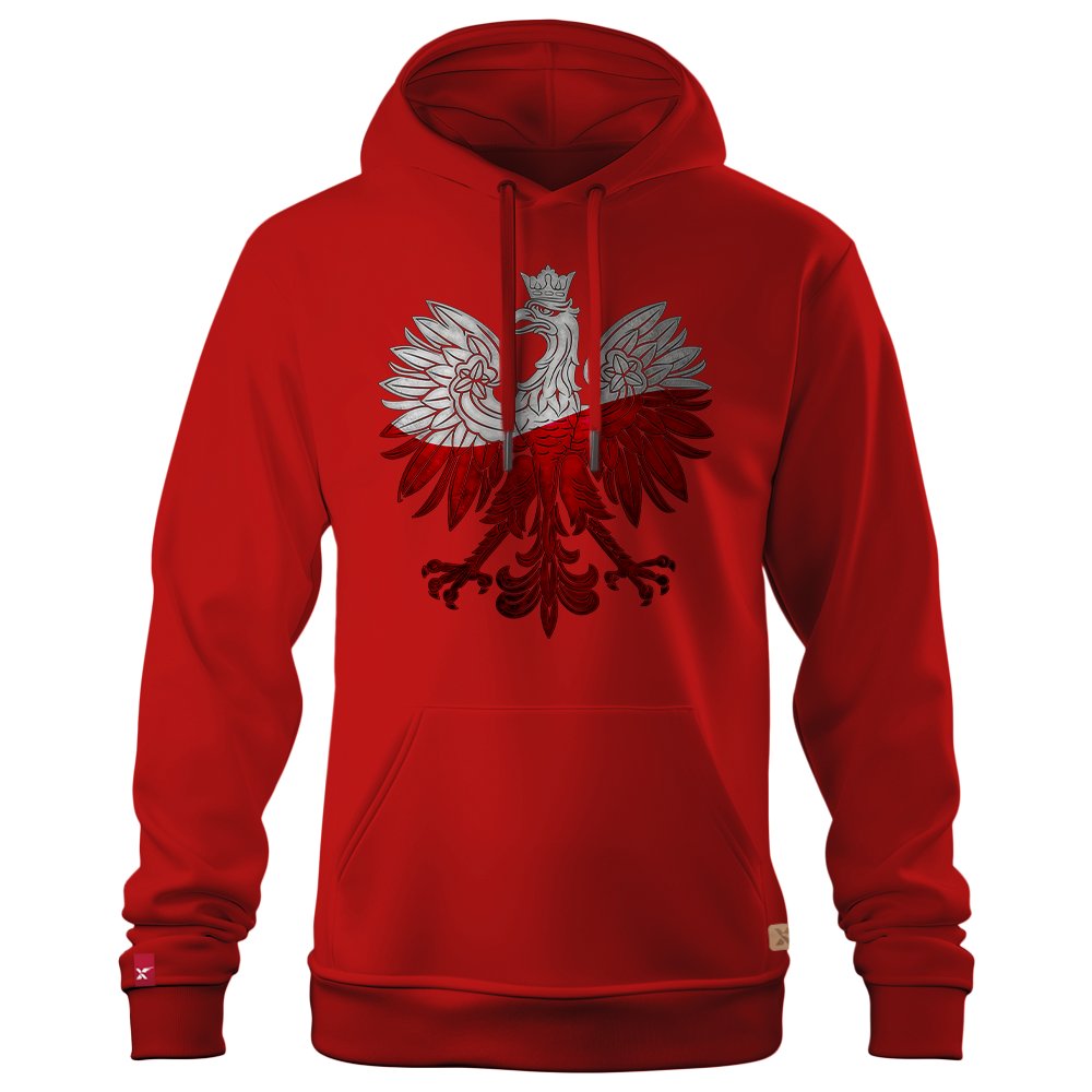Męska czerwona bluza patriotyczna xPatriot z wizerunkiem Orła Biało-Czerwonego. Wysokiej jakości bawełna, trwały nadruk i klasyczny krój – idealna dla każdego patrioty.