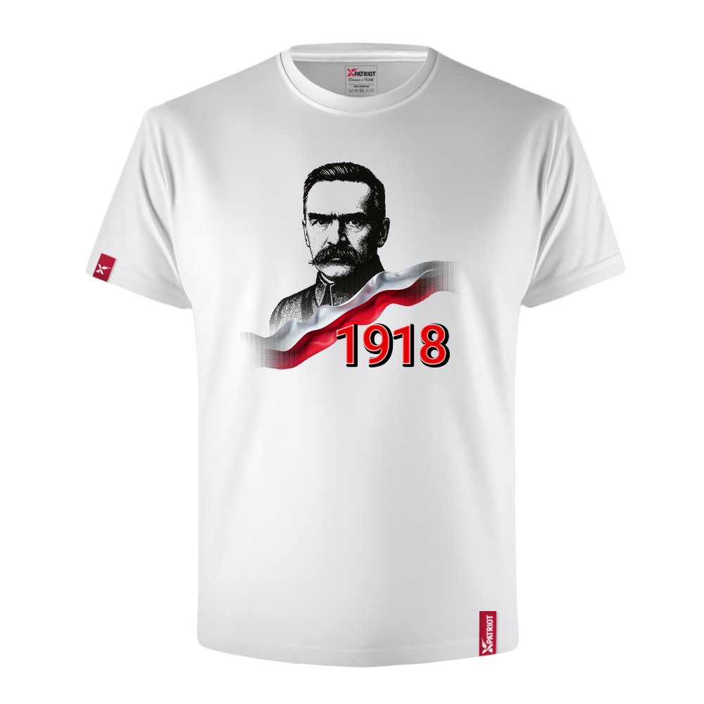 Męska Koszulka Patriotyczna xPatriot Józef Piłsudski 1918 – Biała