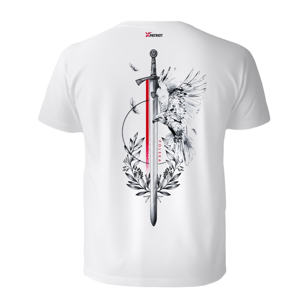Męska Patriotyczna Koszulka Biała xPatriot Polska i Miecz Wolności
