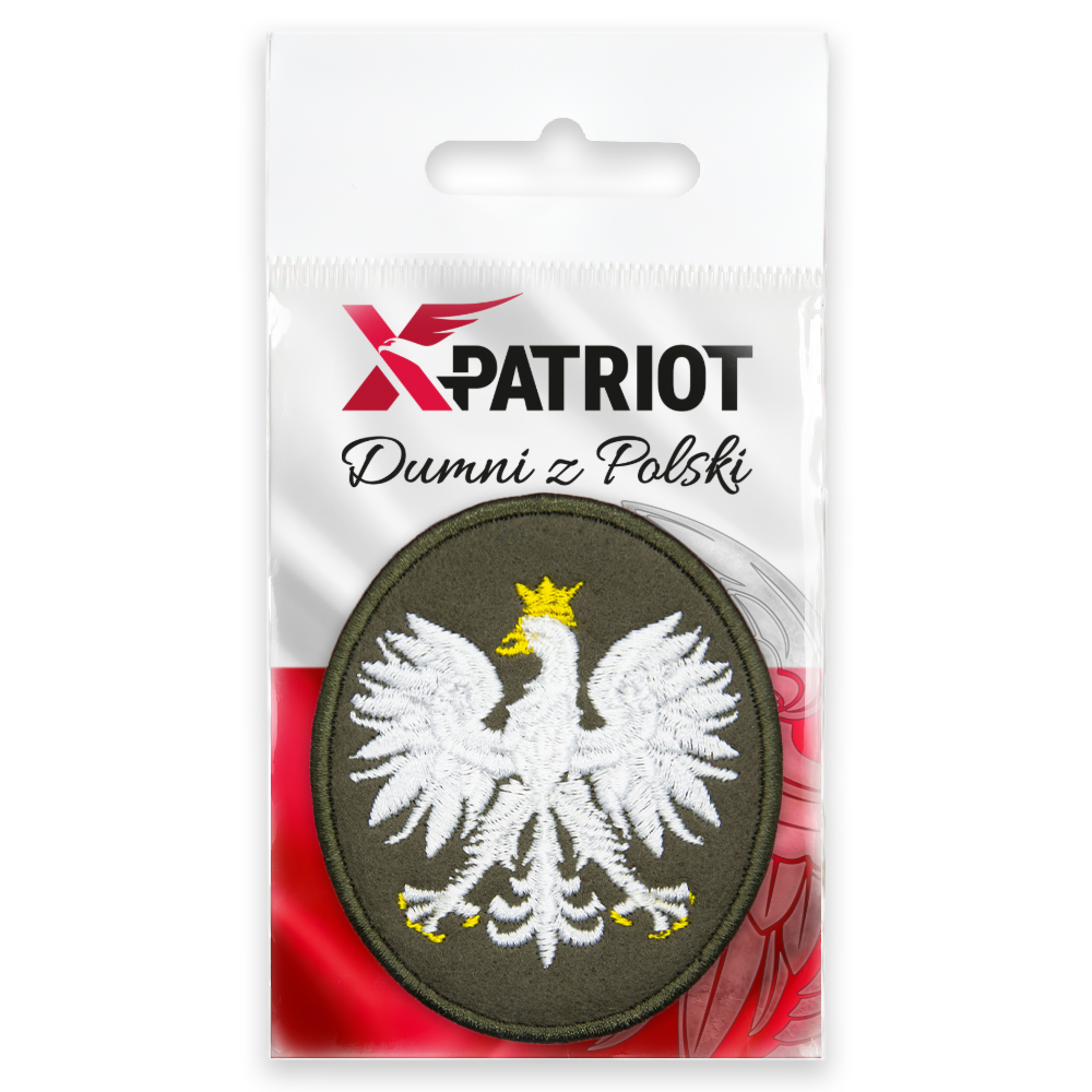- Kolorystyka: biały orzeł ze złotymi akcentami na oliwkowym tle