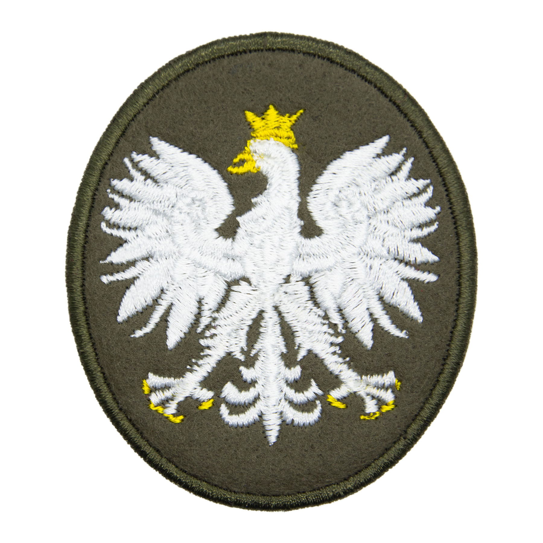 Profesjonalna naszywka wojskowa z orłem na oliwkowym tle. Precyzyjny haft komputerowy, mocowanie na rzep (velcro).