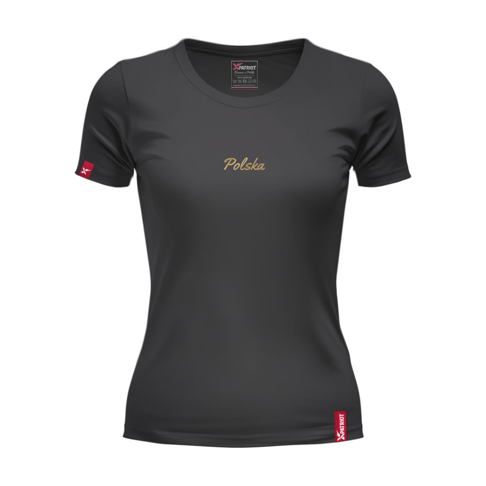 Oryginalna Koszulka Patriotyczna Damska xPatriot – Polska (czarna ze złotym napisem)