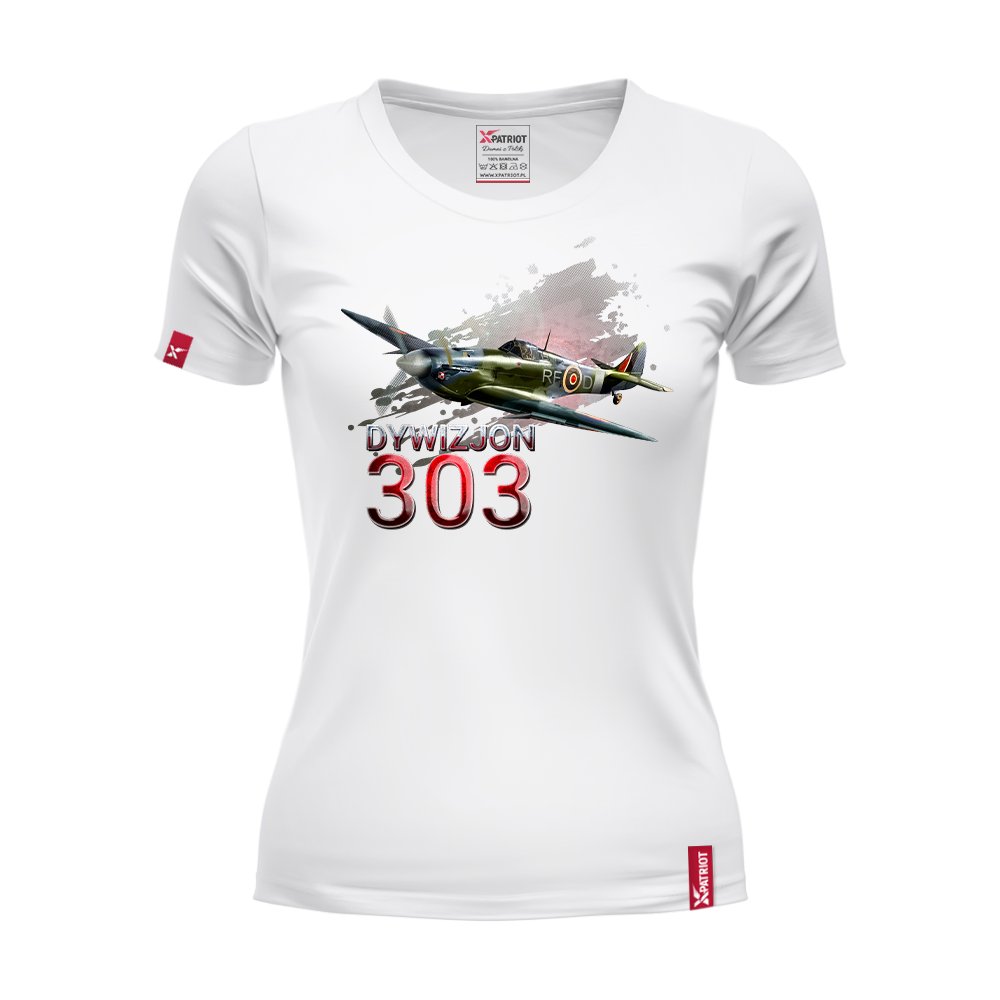 Damska koszulka patriotyczna xPatriot Dywizjon 303 w kolorze białym – wyjątkowy design z samolotem Spitfire i napisem Dywizjon 303. Komfortowa, trwała i stylowa.