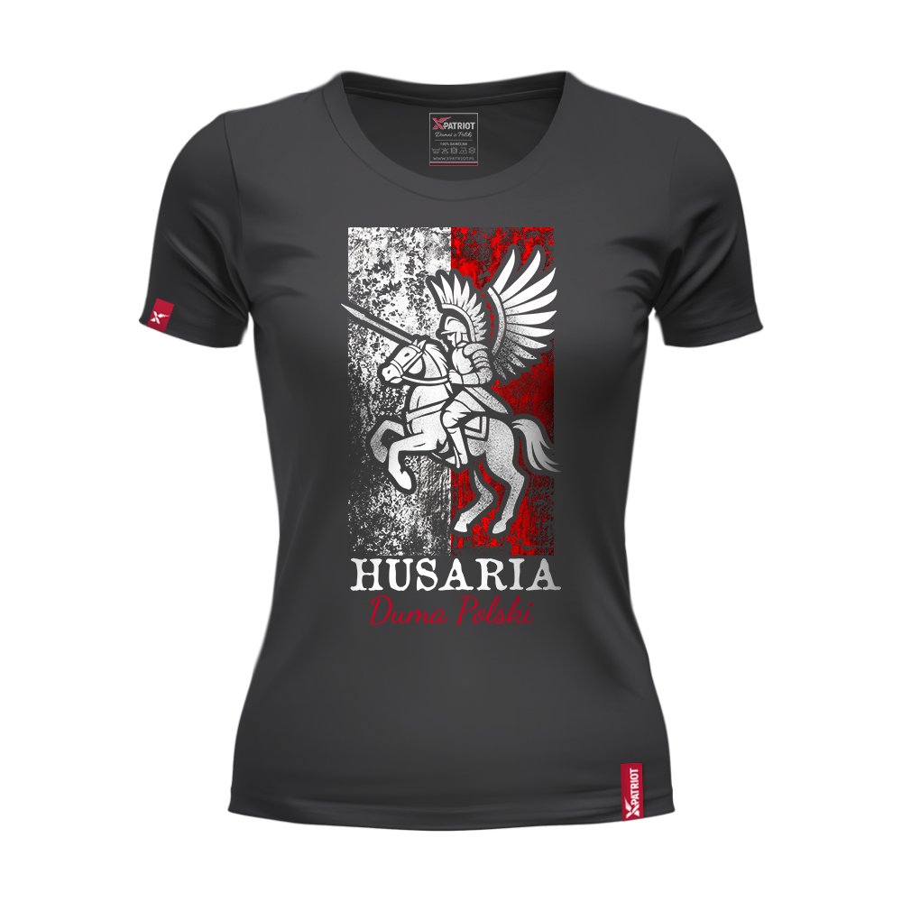 Damska Patriotyczna Koszulka xPatriot – Husaria – Duma Polski – Czarna